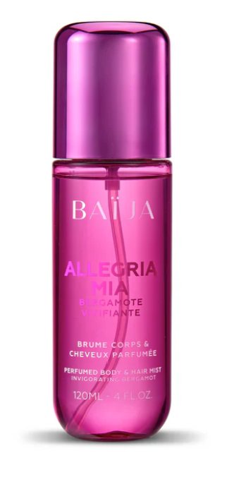Légère et délicate, la brume parfumée Allegria Mia enveloppe le corps et les cheveux d’un voile pétillant et réconfortant. Sa diffusion fine habille la peau d’un sillage joyeux, pensé pour insuffler de la bonne humeur à chaque instant.